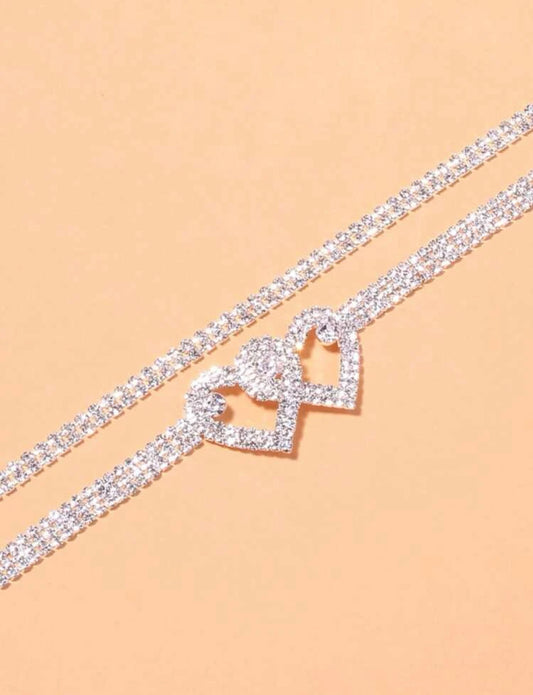 2pc Rhinestone Heart Anklet