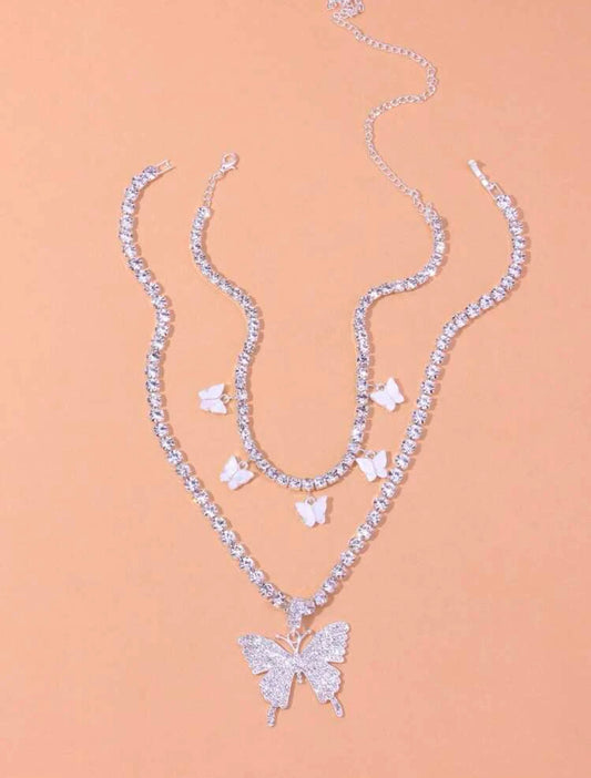 2pc Rhinestone Butterfly Charm